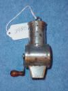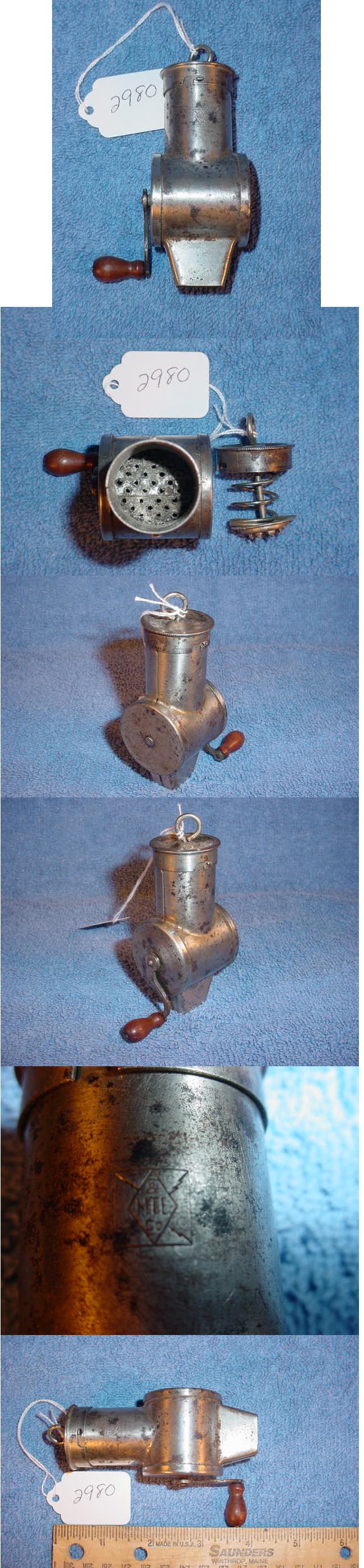 This is a nutmeg grater manufactured by MTE & Co. in the late 1800's. It is made of nickel-plated metal with a spring loaded lid that holds the nutmeg against the grater wheel. The body of this one is in good shape with some areas of surface rust. This grater is sometimes referred to as "The Ever Ready" Item No.2980 |