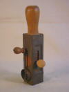 This is a very old, handheld nutmeg grater with it's name, "The Edgar" and it's patent date of "Nov.10-1896" embossed on the spring-loaded cylinder where the nutmeg is inserted. The spring keeps pressure on the nut as you slide it back and forth over the grater. It is in very good condition and the overall length measuring across the bar is 5 1/8". Item No.2721 |