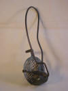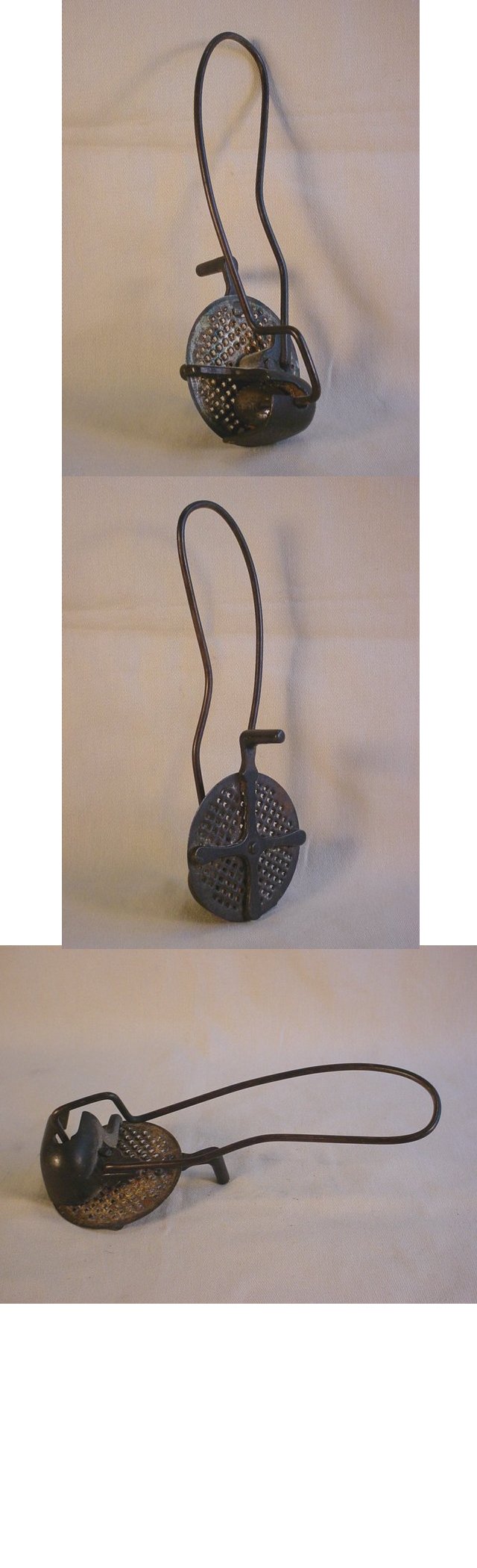 Manufactured of cast iron, tin and wire this nutmeg grater has a wire arm with a disc at the end that is bent to hold the nutmeg against the tin grating disc. The grater is in good condition with some minor discoloration of the metal. This one still had a piece of nutmeg in the grater when I bought it and it will still be there when you receive it. Item No. 3575 |