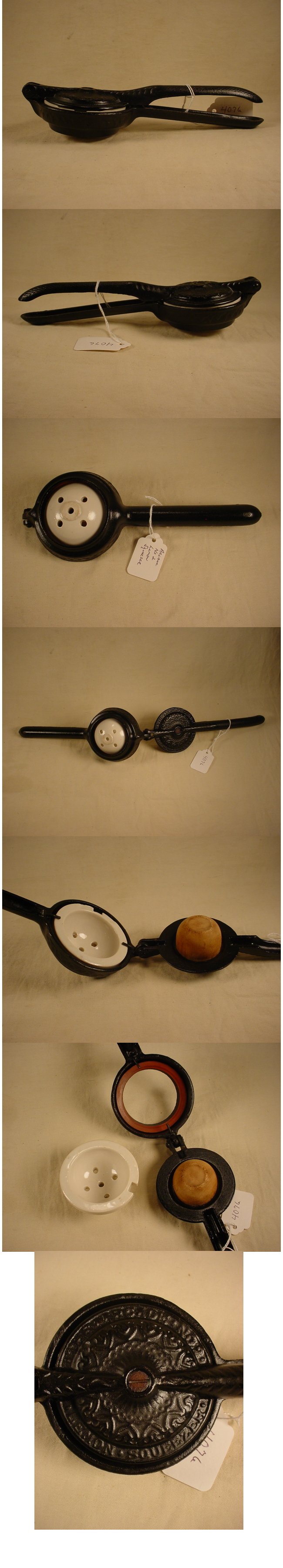 2 Lemon Squeezer". The main body is cast iron with a porcelain or