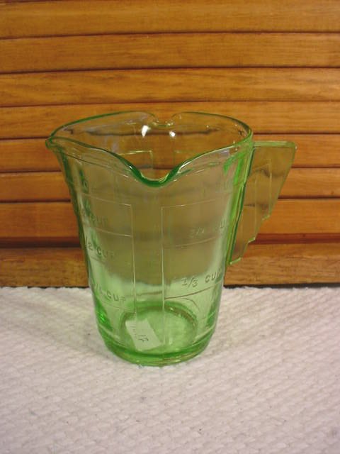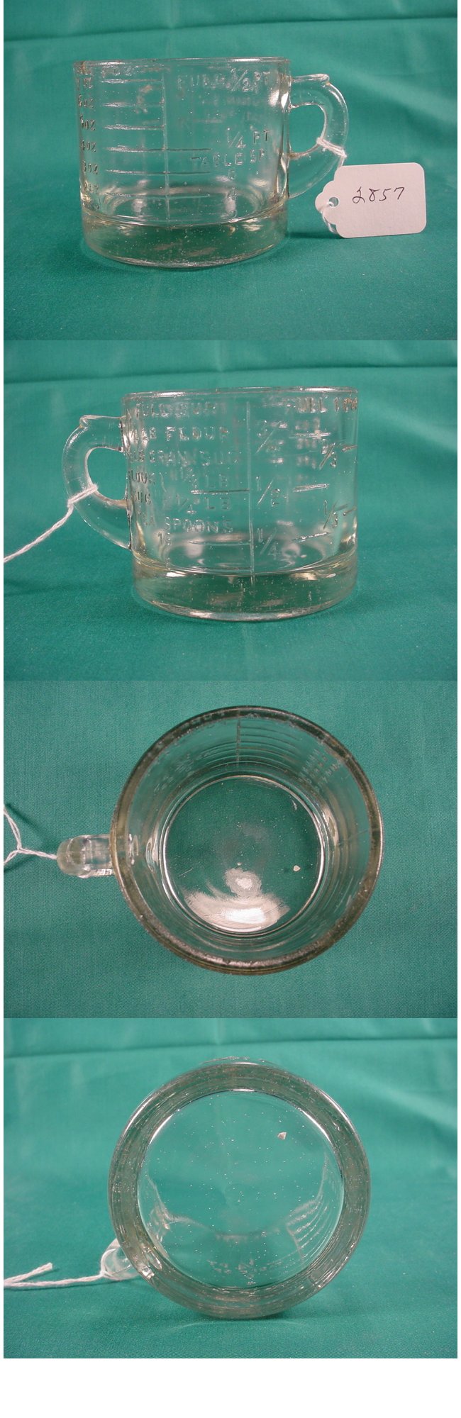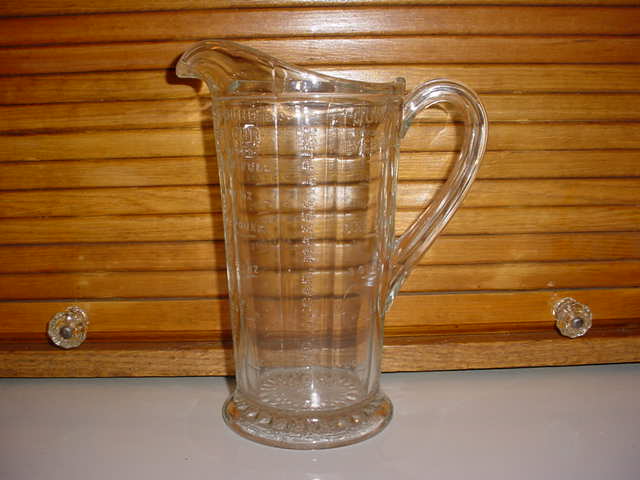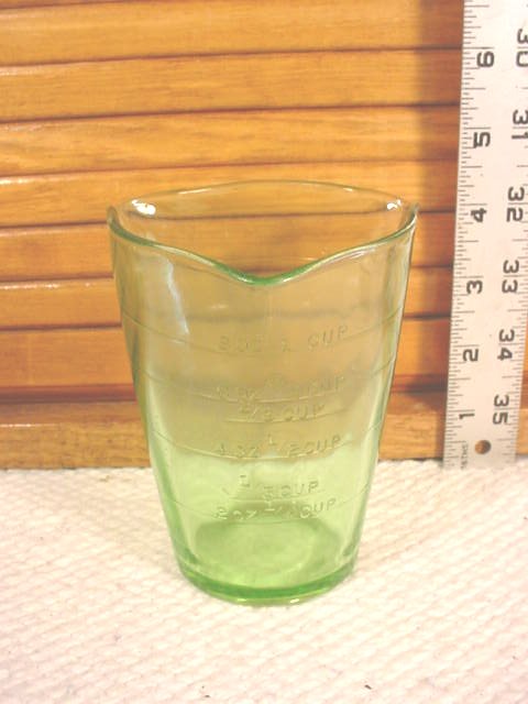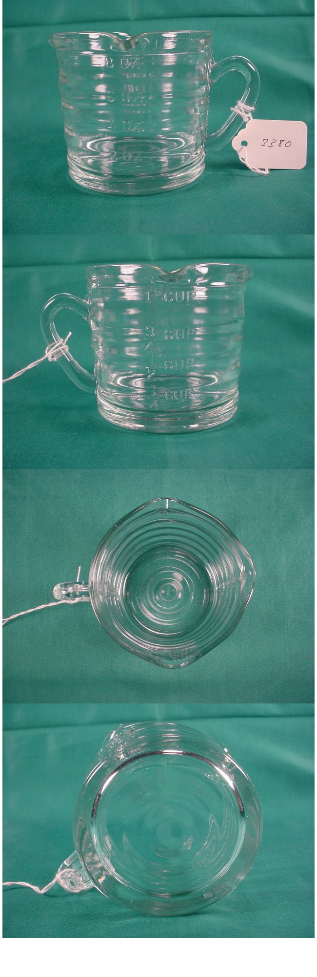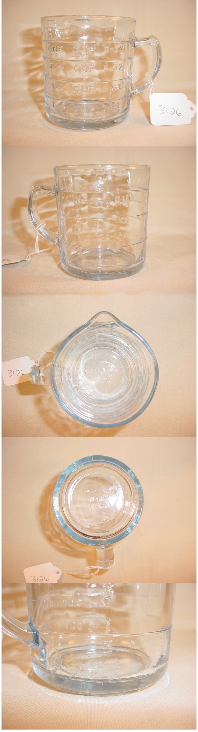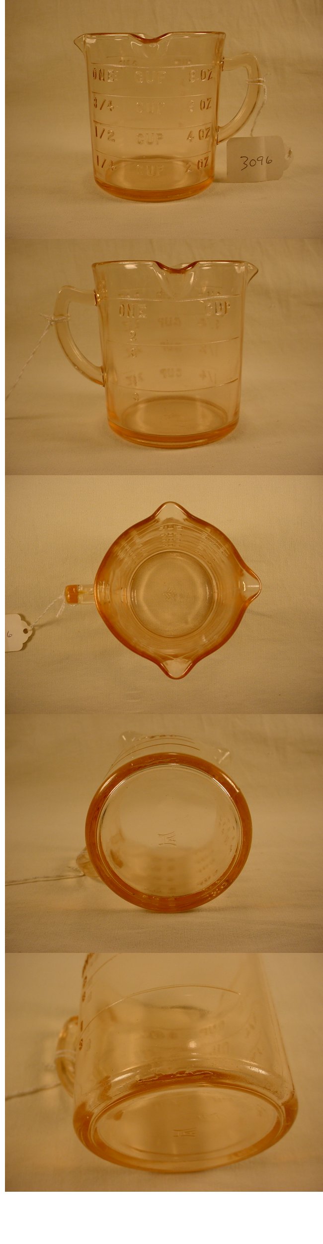 three large pouring spouts that I believe was made by Hocking Glass Co. It is marked in 1/4 cup and oz. increments on one side