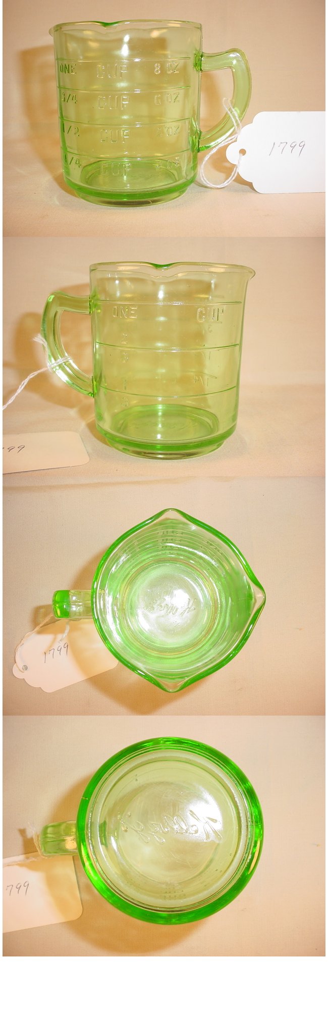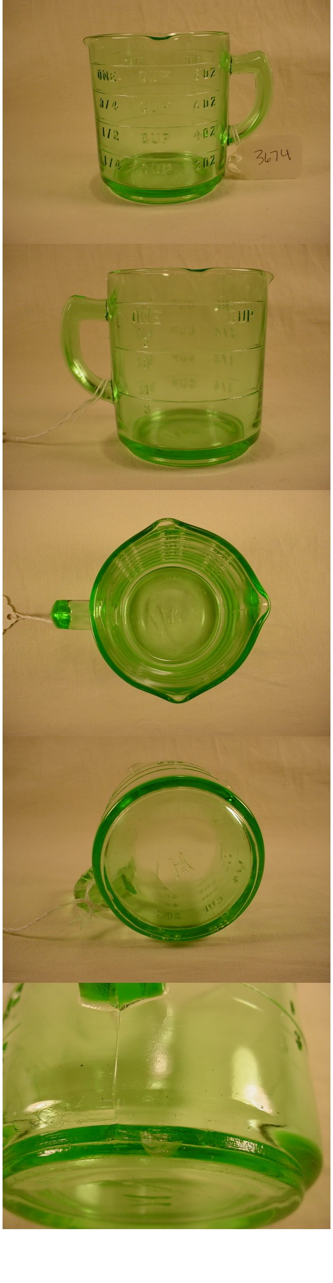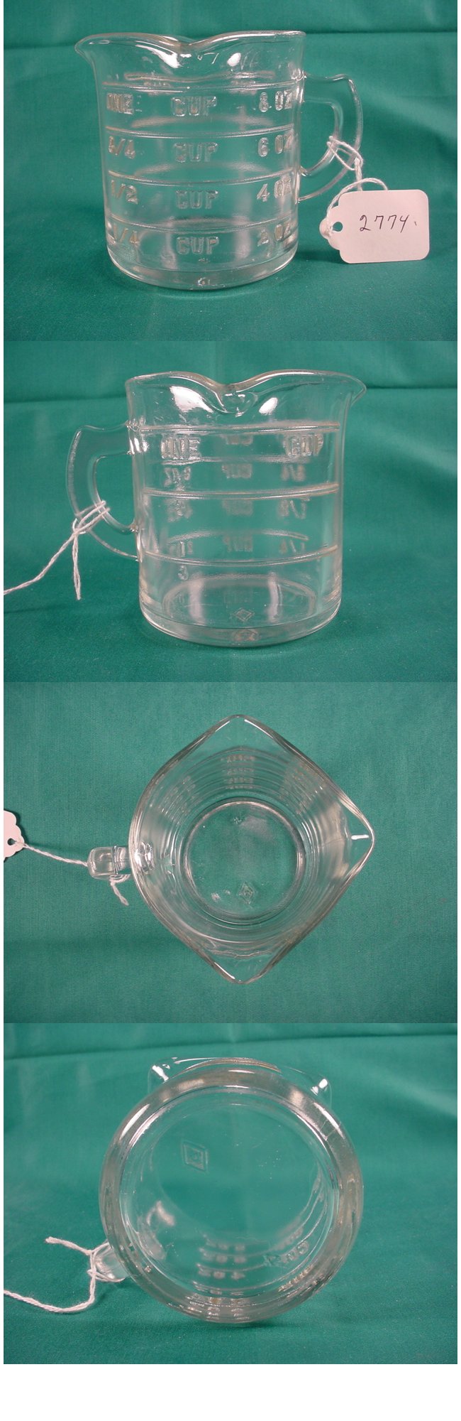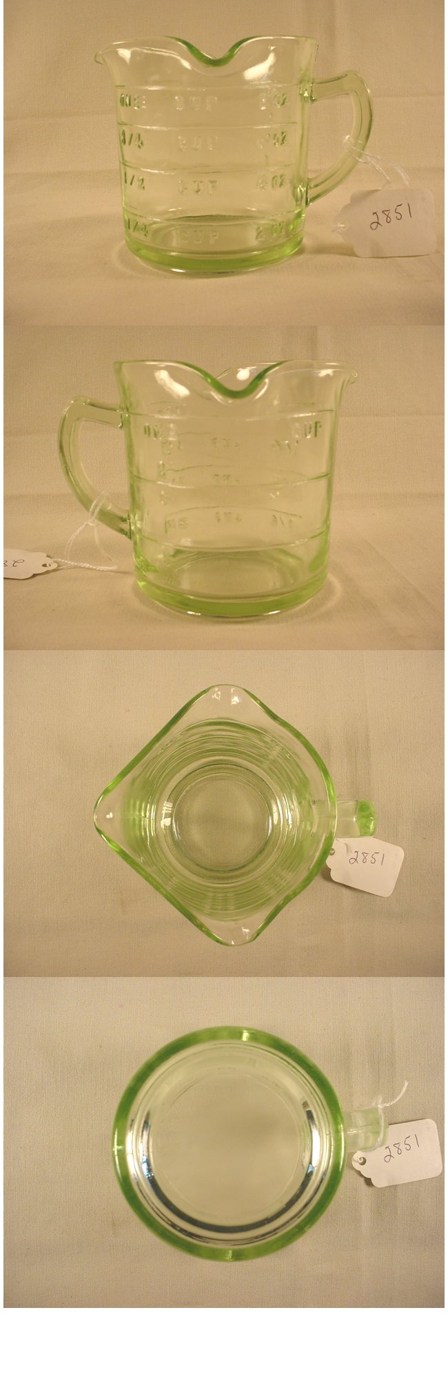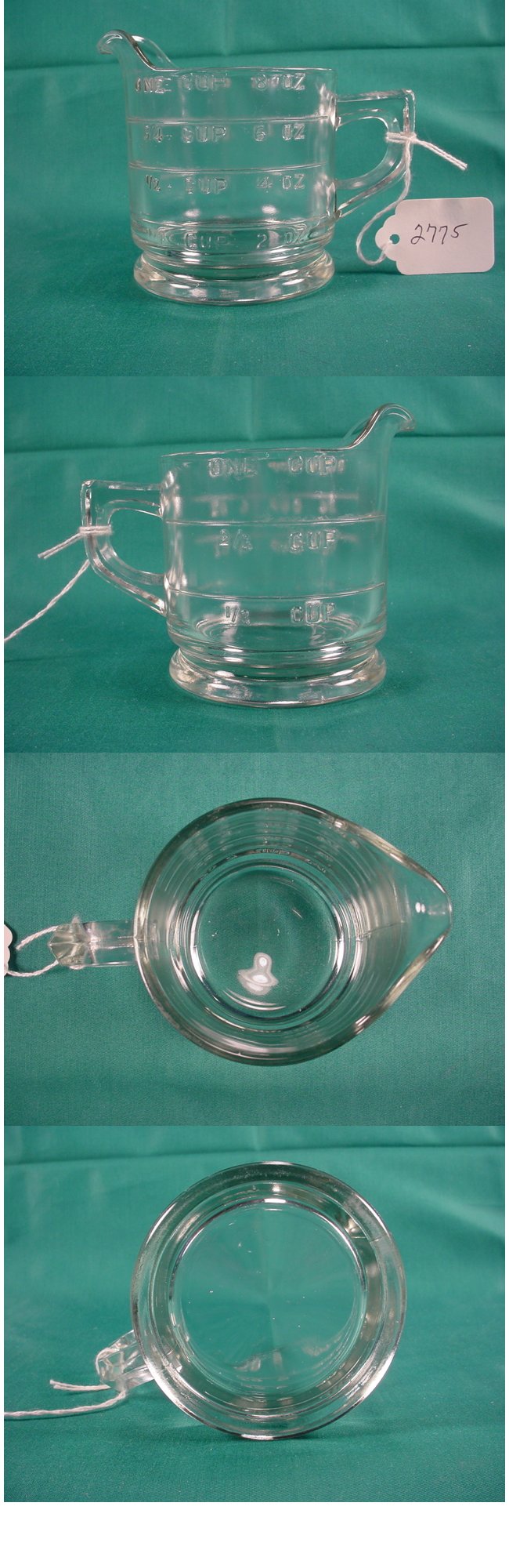 three large pouring spouts that I believe was made by Hocking Glass Co. It is marked in 1/4 cup and oz. increments on one side