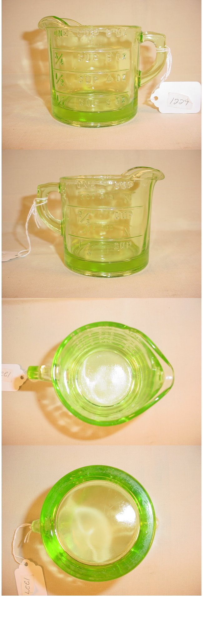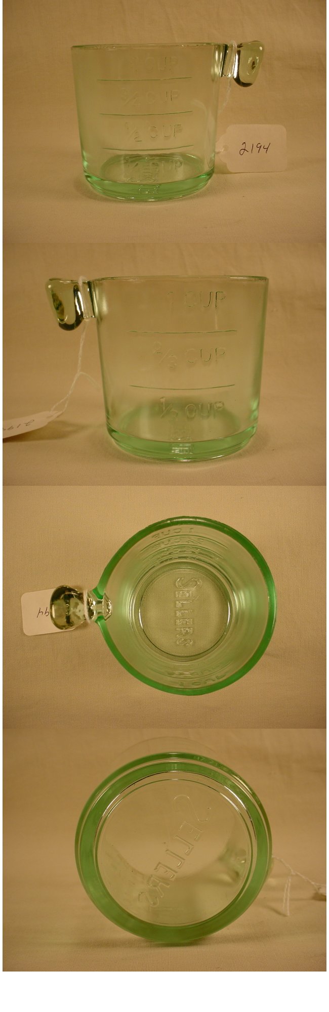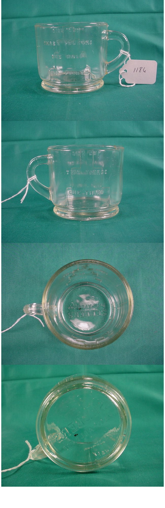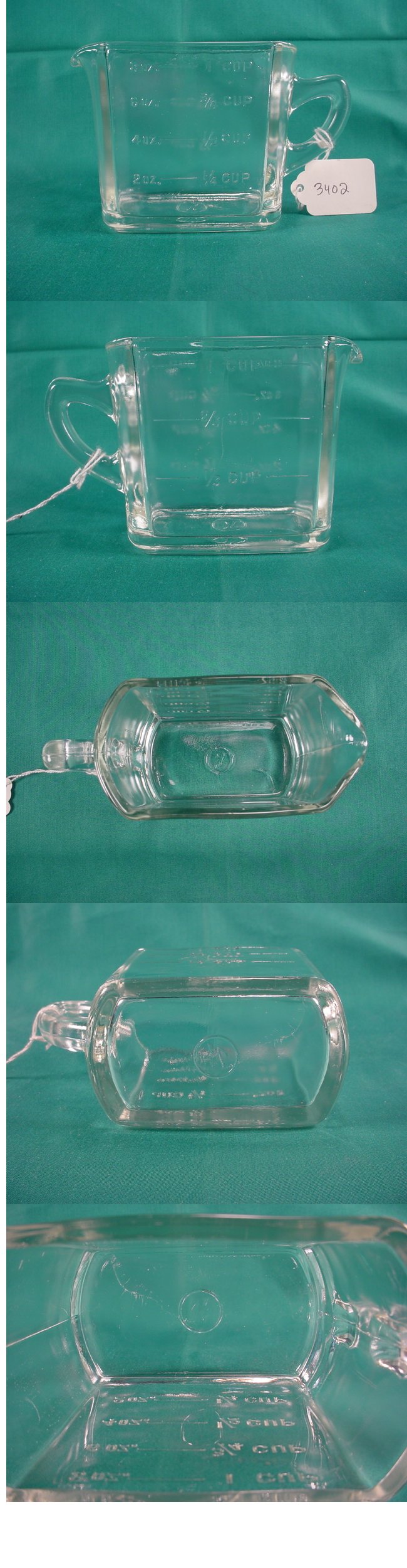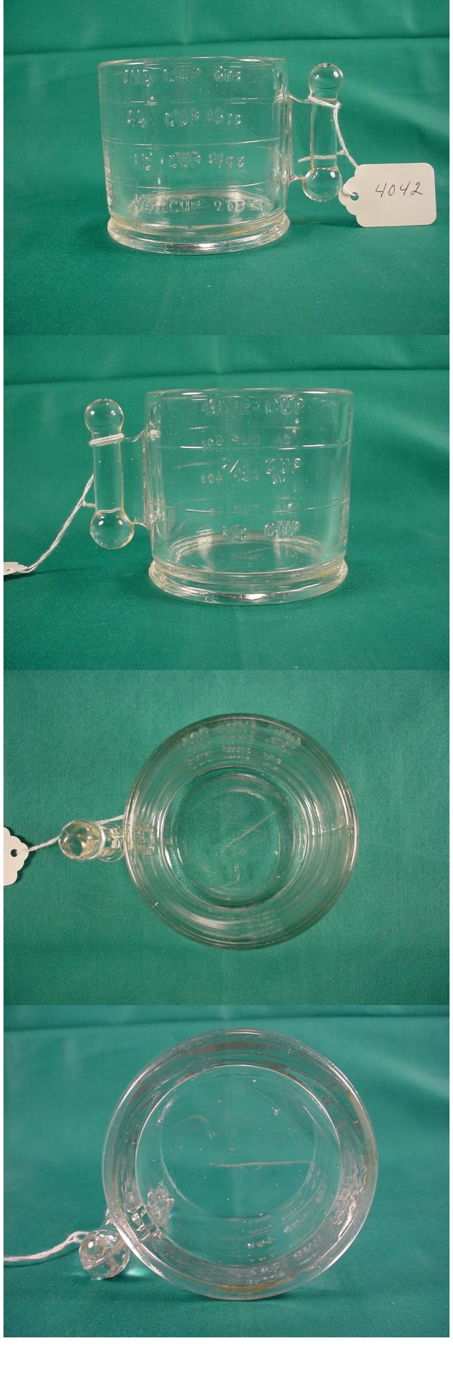 three large pouring spouts that I believe was made by Hocking Glass Co. It is marked in 1/4 cup and oz. increments on one side