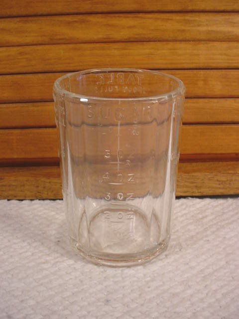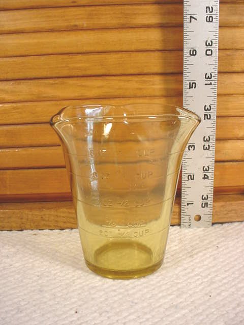 measuring cup with wavy glass on the outside wall is unknown. It has 1/4