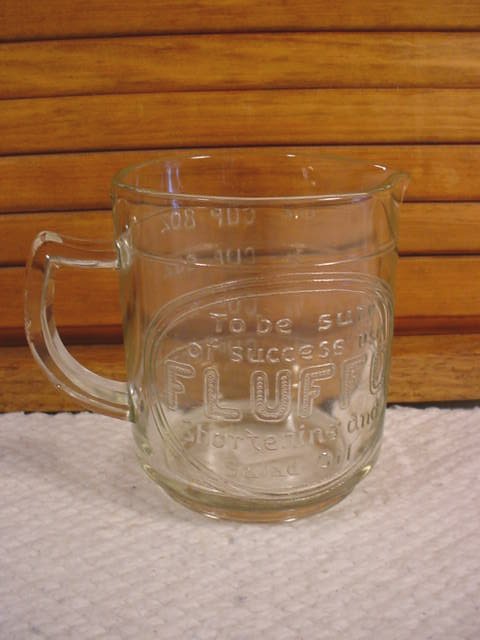 was a give-away when you purchased Fluffo products. The cup is embossed