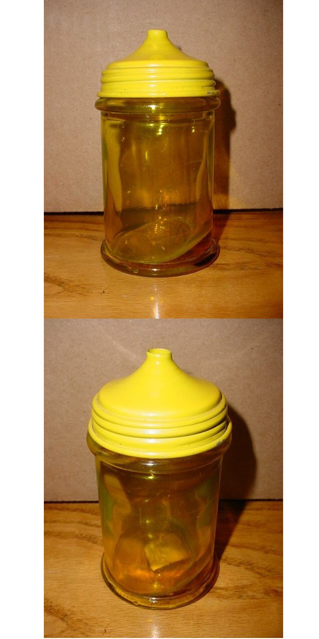 Yellow Sugar Shaker Identical to the one above in shape and style, there are also no markings on this shaker but this one is not shown in Kitchen Glassware of the Depression Years. Item No 2683 |